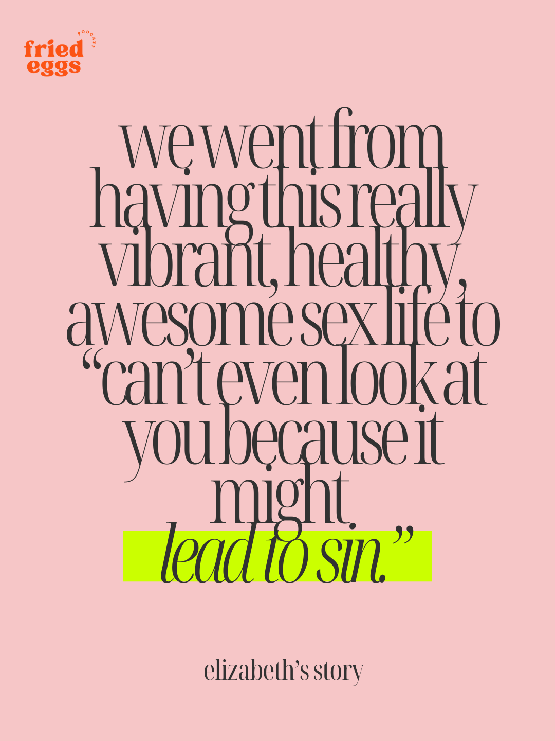 I just listened to the episode about sex and infertility, and I realized I do have some things to tell you guys. I really identified with the part of the podcast when we were talking about how purity culture really messed up your sex life.